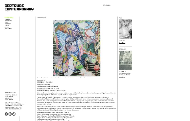 Gertrude Contemporary is valued nationally and respected internationally as a dynamic centre for the production and presentation of contemporary art. With the artist placed firmly at the centre of our community, they foster a culture of risk, collaboration and critical-thinking to generate innovative programs that engage audiences in creative exchange.